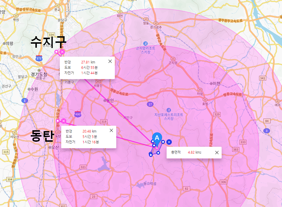 차후 일자리 추가에 따른 주변 지역 배후거주지