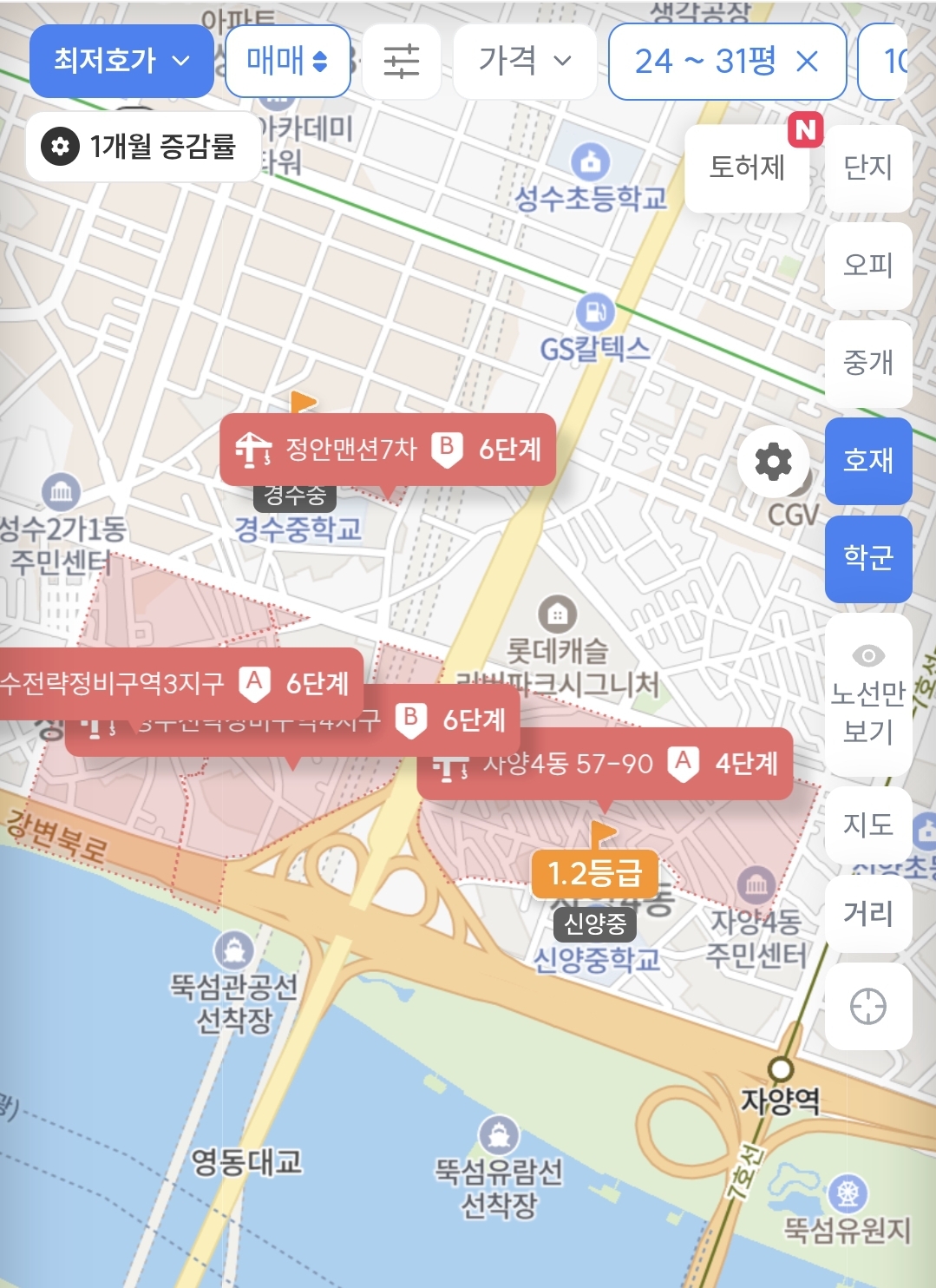 2급지인 광진구는 상급지로 토허재 확대로 인한 거래 활발 및 실거래가 상승을 보여주고 있고, 자양7구역 & 자양4동 a구역의 재개발이 진행되면 노후화된 빌라촌들이 새로운 환경으로 거듭날 것 같다. 안그래도 입지 좋은 광진 (광장 학군지 쪽 대비 다소 노후화된 한강변 자양쪽) 구가 환경이 발전되면 정말 더 좋아지지 않을까 싶다. 광진구청역 옆 롯데캐슬이스트폴도 입주에 아이파크까지 들어오면 강변역 주변 낙후 지역도 많이 개선될 것 같다.