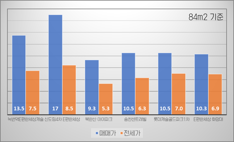 ✔️ 구로, 도봉, 강북 84m2 랜드마크 기준 전세 없음 : 서울 공급 부족