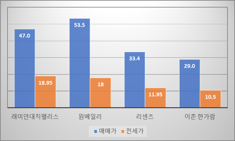 3급지 랜드마크 단지들 까지는 전세가율이 50% 미만 이기 때문에 투자할 때 잘 고려해서 해야할 것으로 판단됩니다.