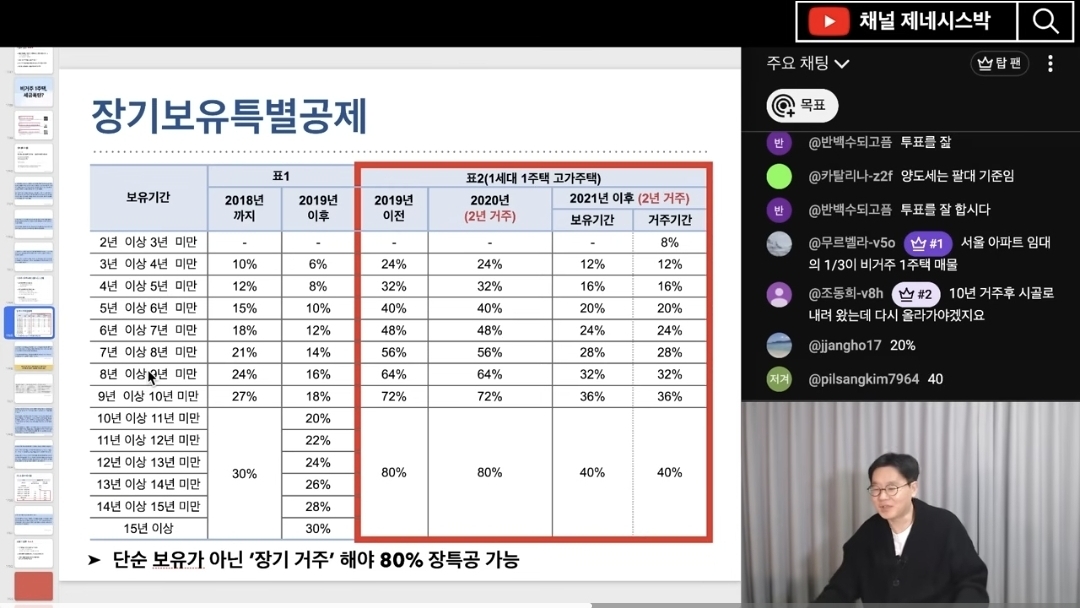 2년 이상 실제 거주해야 표2 적용이 가능합니다 (10:05, 12:45).
