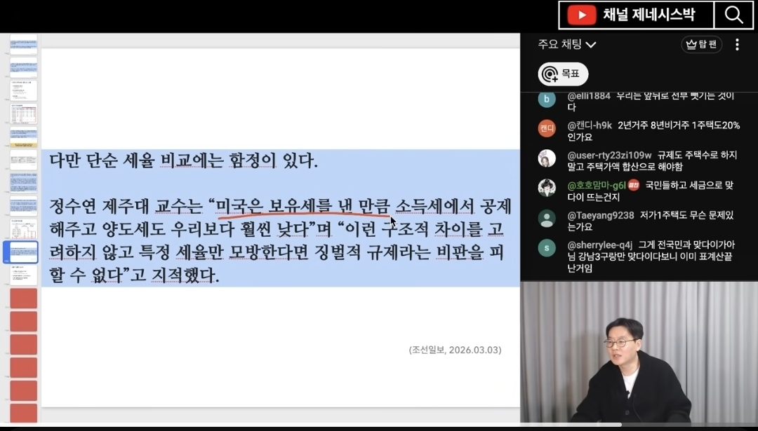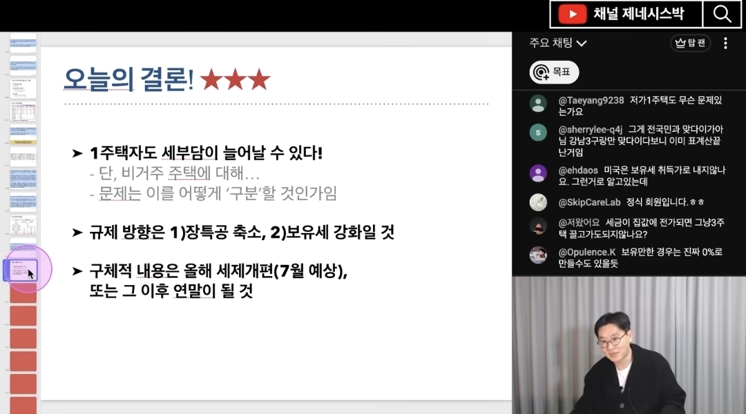 세 부담을 늘리겠다는 메시지를 지속적으로 내고 있습니다 (0:32, 2:32).