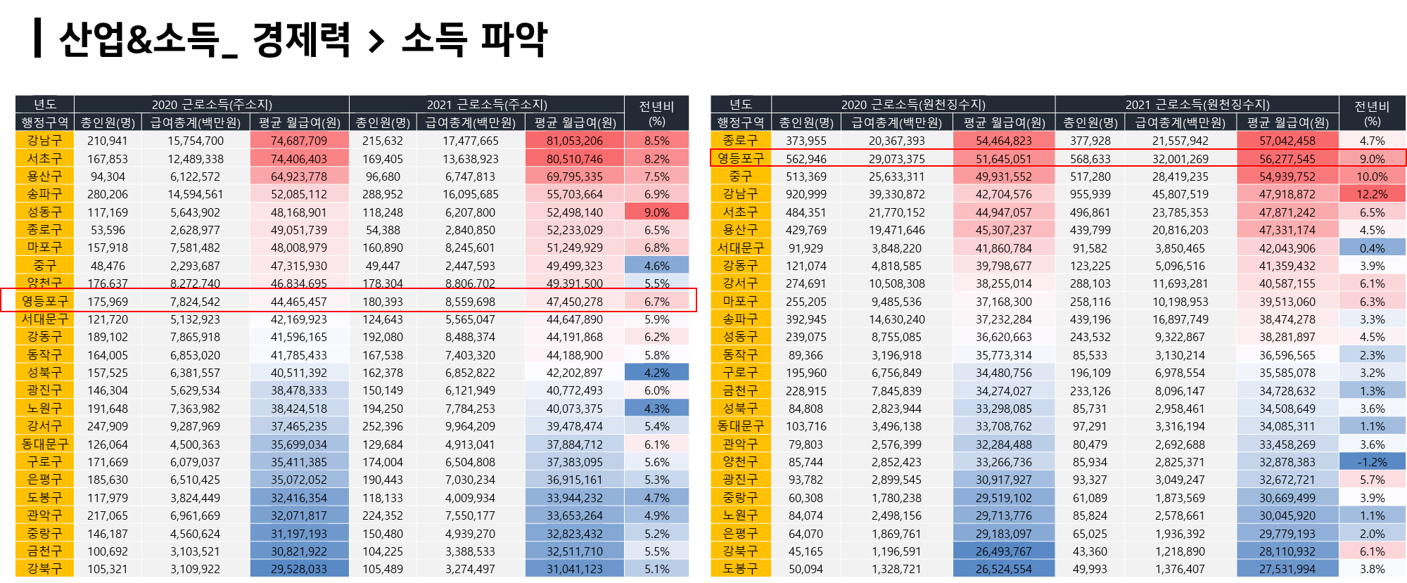 영등포의 소득 수준을 보니 주택 구매력이 높다