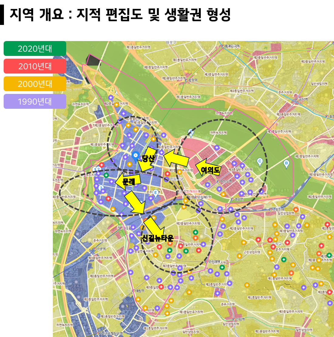 2. 생활권 변화 살펴봄으로써 기축~신축단지 위치를 파악할 수 있음