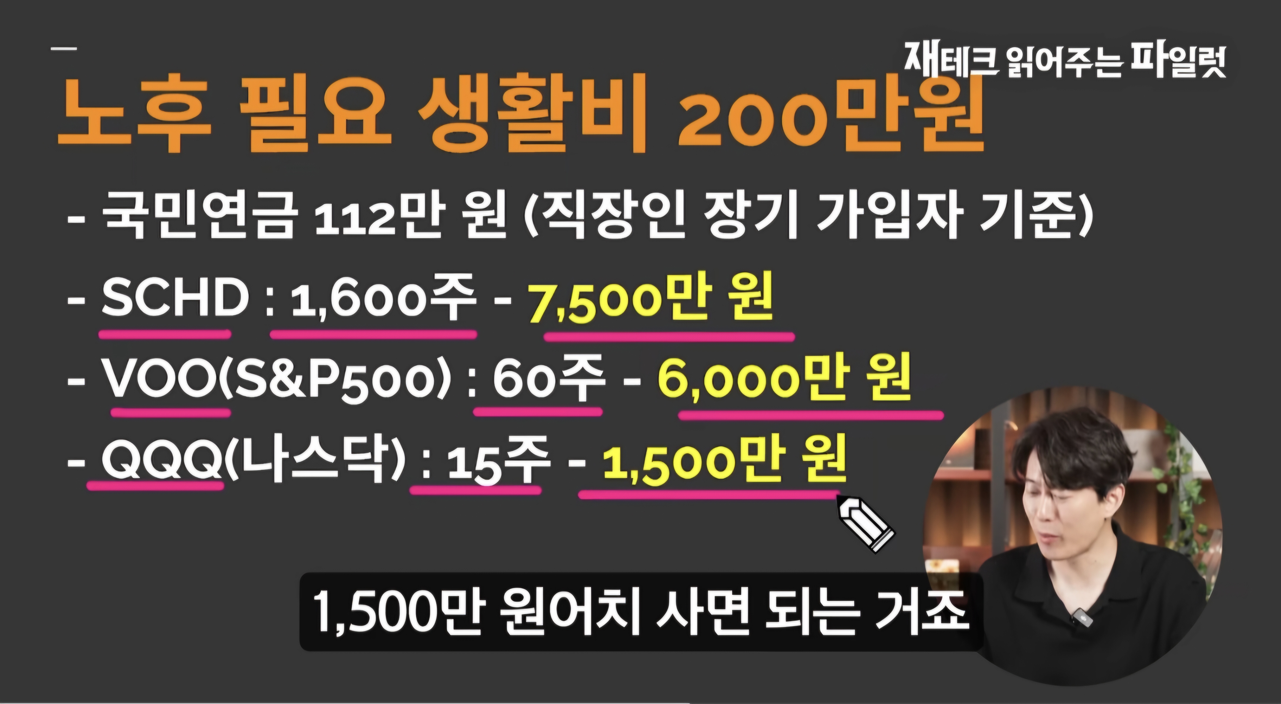 영상은 1억 5천만 원의 자금으로 은퇴 후 생활비를 마련할 수 있는 미국 ETF 투자 전략을 다루고 있습니다. 주요 내용은 다음과 같습니다.
