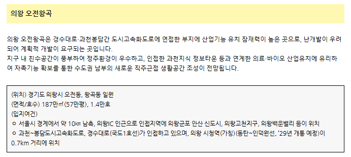 의왕시 오전동 / 왕곡동은 현재 비선호하는 생활권