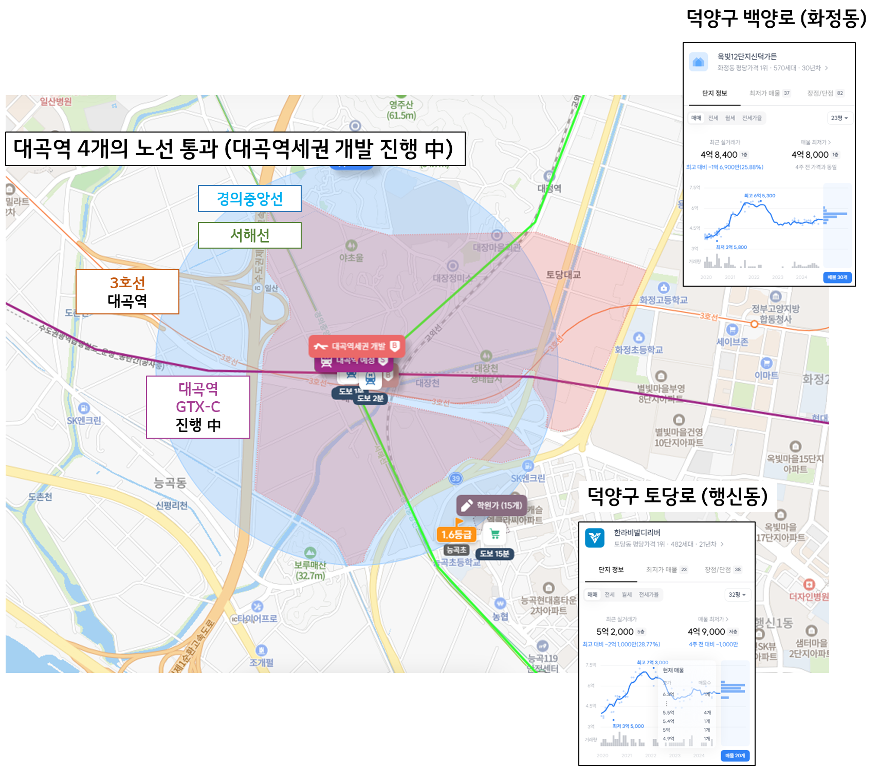 고양 대곡은 교외선까지 하면 5개의 노선이 만나는 교충의 요충지로