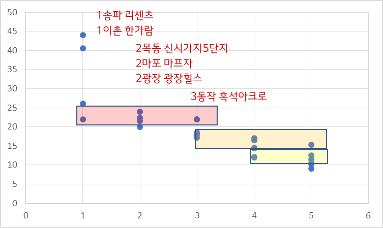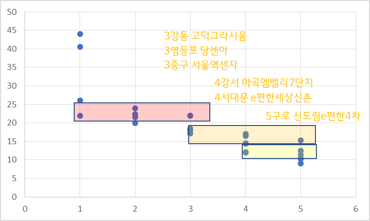서울5급지의 가격 밴드는 경기도 대장들과 견줄만 하여 같이 묶었습니다.