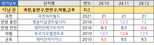 인프라가 잘 갖춰진 과천 이남의 경기도권 단지들은