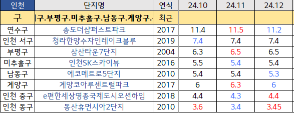 인천의 대장 송도의 더샵퍼스틐파크(2017) 11.2로 약간 호가 감소했으며