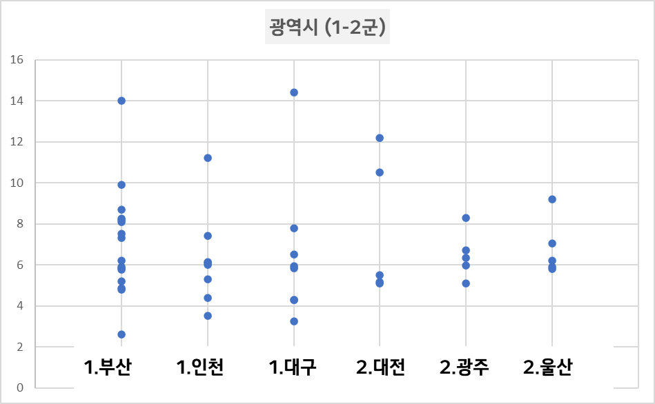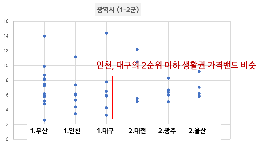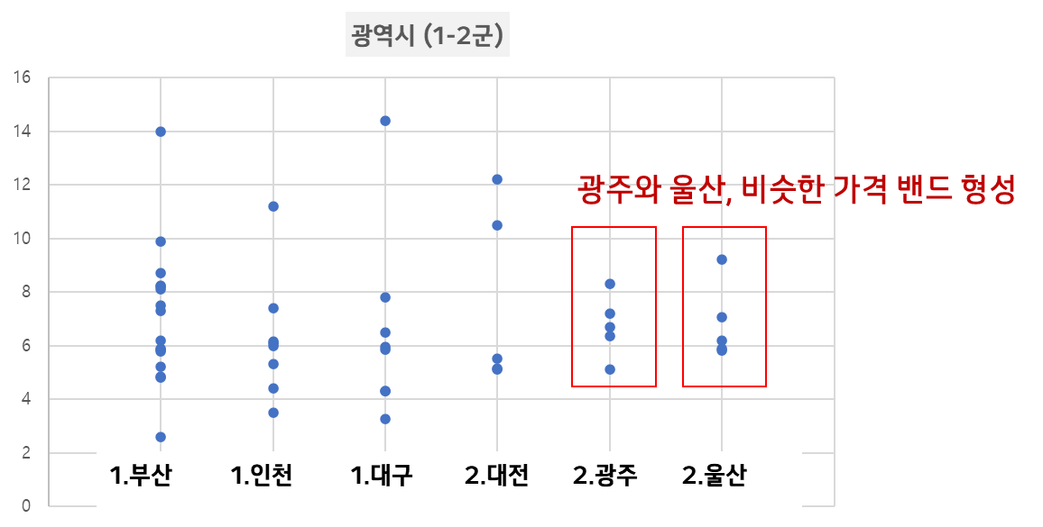 광역시 1-2군에 대해서 가격 밴드를 잡아보려고 합니다