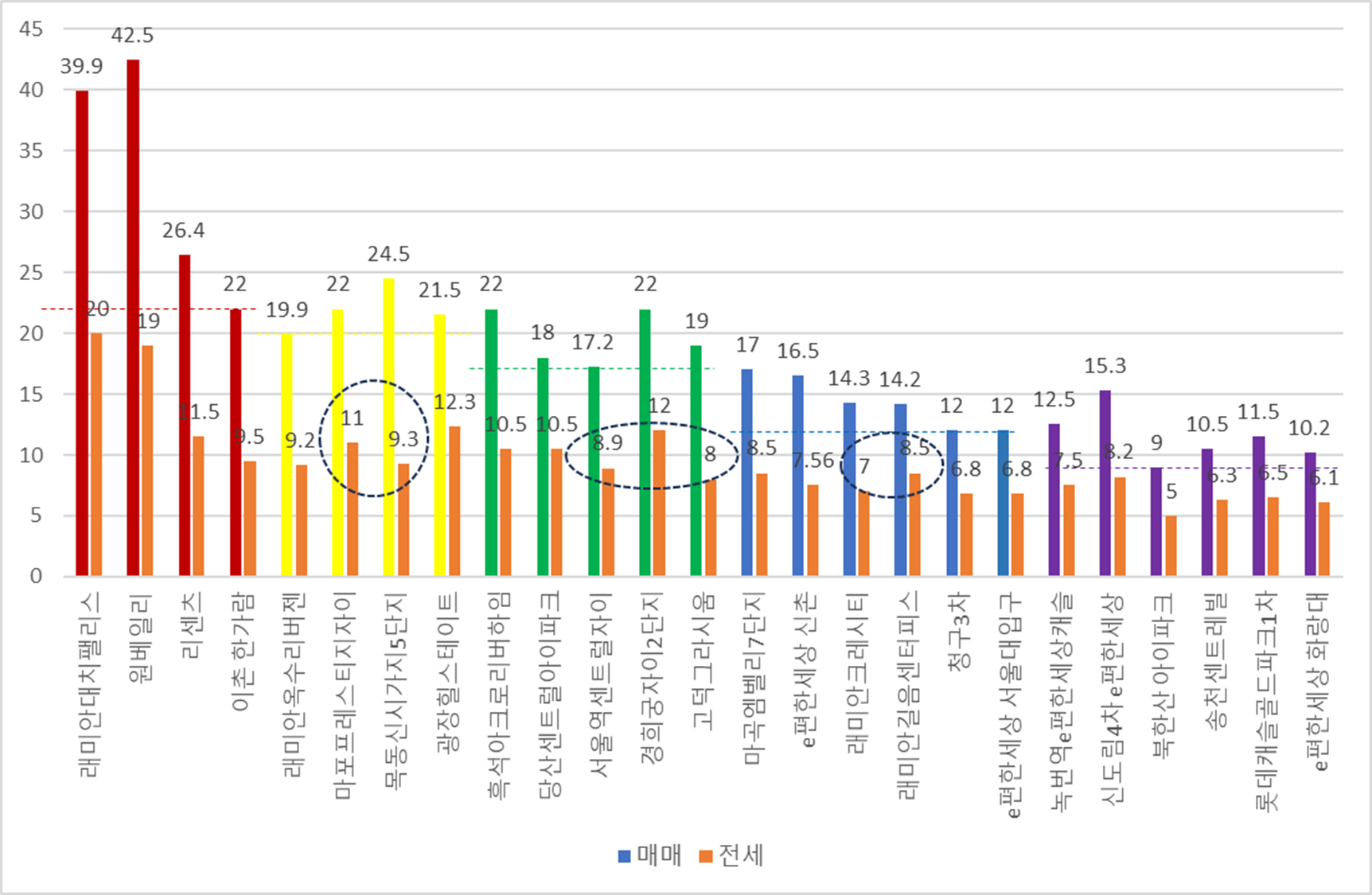 비슷한 전세가를 보이고 있다고 볼 수 있기 때문에