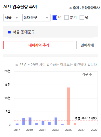 아실 공급량 그래프를 통해서 동대문의 25년 매물량은 많은 것을 알 수 있다