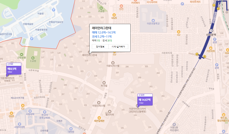 경희궁자이를 임장가보면 대단지의 3,5호선 지하철 이용가능 및 인프라가 잘 갖춰있어